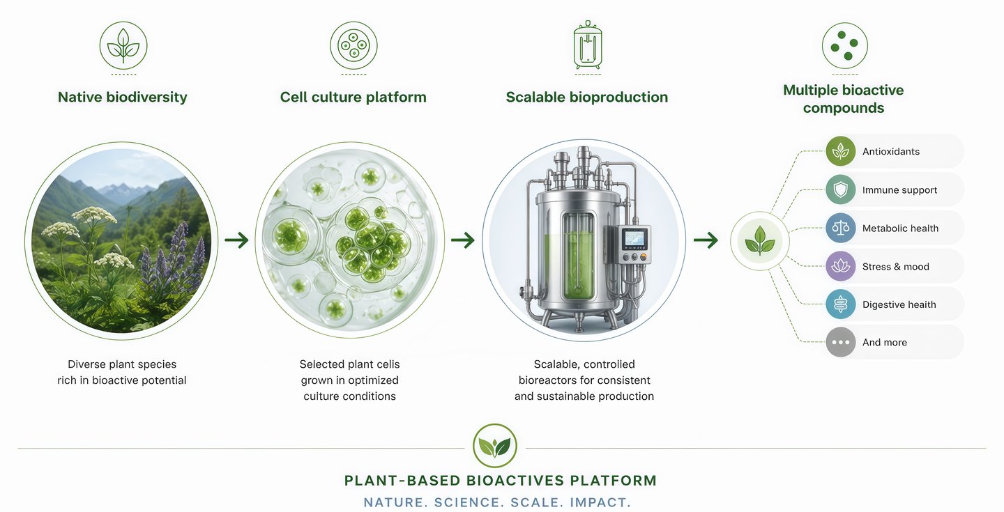 By combining plant science and bioprocess engineering, we aim to redefine how bioactive ingredients are sourced: